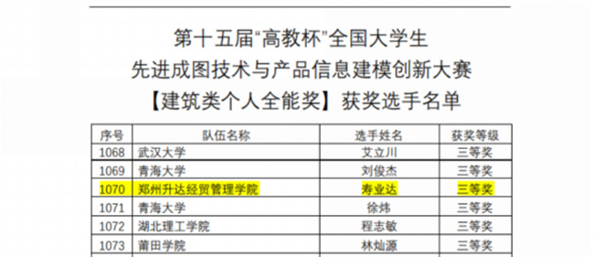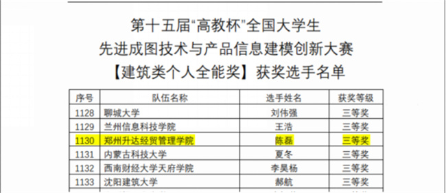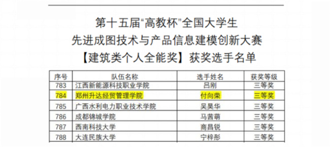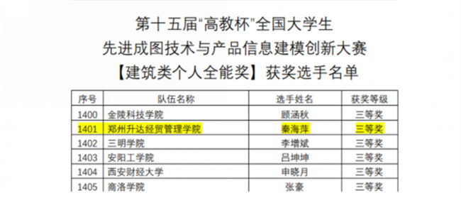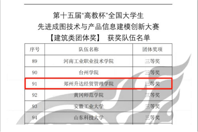 鄭州升達經(jīng)貿(mào)管理學院在第十五屆全國大學生建?倹Q賽獲佳績