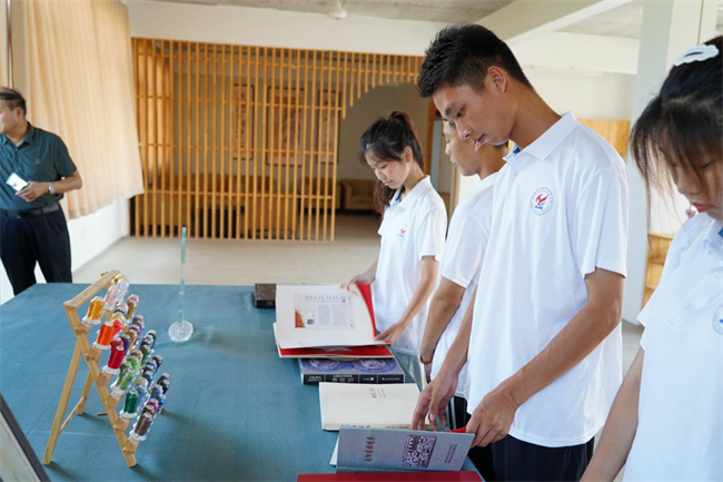 圖為實(shí)踐團(tuán)成員在非遺體驗(yàn)館翻閱《非物質(zhì)文化遺產(chǎn)名錄》,了解、學(xué)習(xí)非遺項(xiàng)目和非遺文化。王宛玲 攝