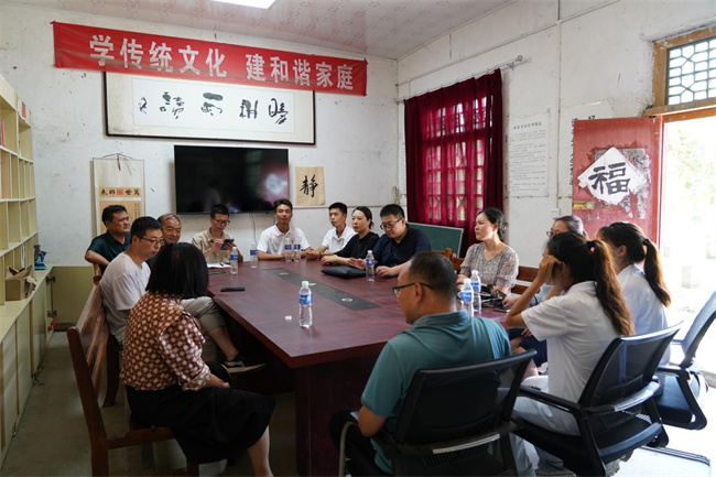 圖為實(shí)踐團(tuán)成員與實(shí)踐團(tuán)導(dǎo)師及文化周莊黨員干部群眾座談,交流非遺傳承、保護(hù)和發(fā)展的措施、路徑、方法。王宛玲 攝