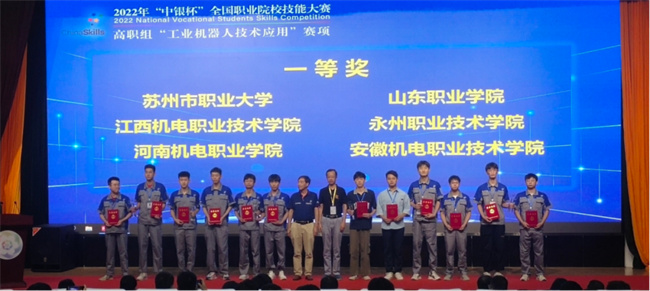 2022年8月21日至25日,“工業(yè)機(jī)器人技術(shù)應(yīng)用”賽項(xiàng)代表隊(duì)經(jīng)過(guò)5天3個(gè)賽段10余小時(shí)賽程的激烈角逐,從全國(guó)59支隊(duì)伍中脫穎而出,榮獲國(guó)賽一等獎(jiǎng),創(chuàng)造了學(xué)校國(guó)家級(jí)獎(jiǎng)項(xiàng)的最高榮譽(yù),填補(bǔ)了學(xué)校在教育部國(guó)家級(jí)一等獎(jiǎng)賽道的空白。