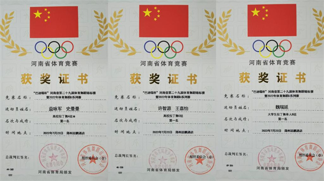 河南省體育局副局長(zhǎng)馬宇峰、河南省體育局青少年體育處處長(zhǎng)馬延春、河南省武術(shù)體操冰雪運(yùn)動(dòng)中心主任晏猛等省體育局領(lǐng)導(dǎo)出席了開(kāi)幕式。同時(shí),中國(guó)體育舞蹈聯(lián)合會(huì)選派10余名的國(guó)家級(jí)評(píng)審和30余名省內(nèi)評(píng)審共同值裁本次賽事。