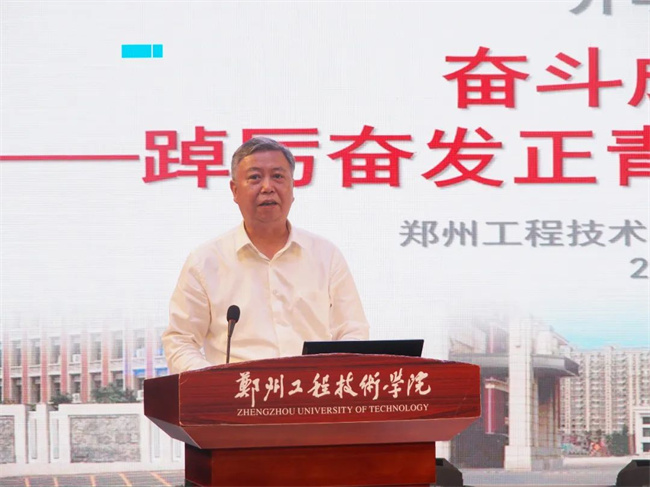 校長盧奎從“奮斗成就夢想 做堅定不移聽黨話 跟黨走的時代青年”“踔厲奮發(fā)正青春 做勇于擔當 砥礪奮斗的時代青年”“踏浪前行展風采 做不懼風雨 堪當大任的時代青年”三個篇章徐徐展開、娓娓道來。盧校長用自己親身經(jīng)歷,真情實感地回顧了學(xué)校今年5月封校期間,鄭工人在各級黨委、政府和學(xué)校黨委的堅強領(lǐng)導(dǎo)下,風雨同舟、共克時艱,全校師生眾志成城,擔當作為,阻擋疫情,筑牢防線,將風險降到最低的艱難時刻。