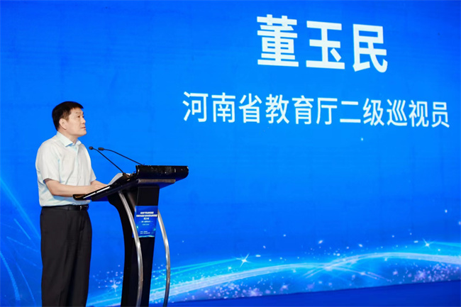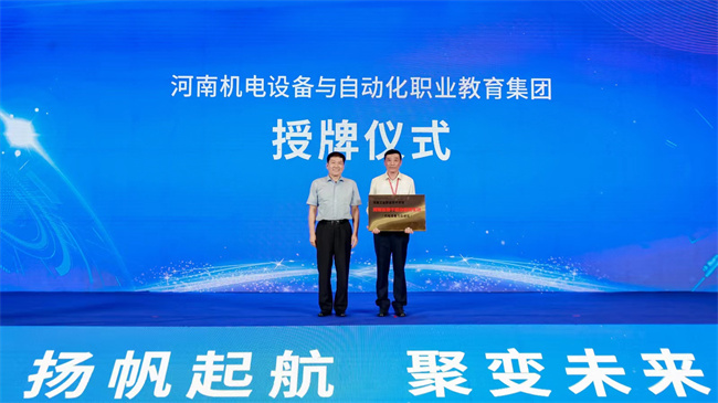 董玉民為河南機(jī)電設(shè)備與自動(dòng)化職業(yè)教育集團(tuán)授牌,河南工業(yè)職業(yè)技術(shù)學(xué)院作為理事長(zhǎng)單位接牌。