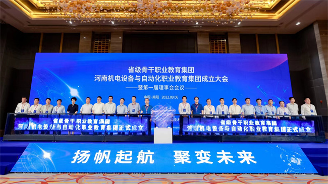 與會(huì)領(lǐng)導(dǎo)共同為河南機(jī)電設(shè)備與自動(dòng)化職業(yè)教育集團(tuán)舉行啟動(dòng)儀式。