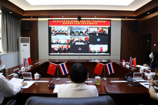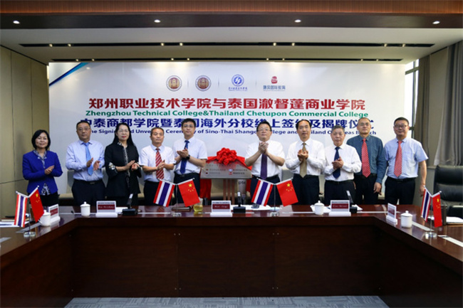 經(jīng)過各方共同努力,由鄭州職業(yè)技術學院、泰國澈督蓬商業(yè)學院、曼谷職業(yè)教育中心和唐風國際教育集團四方共同建立的 “中泰商都學院”正式成立。