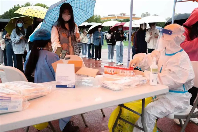 學(xué)校在48小時(shí)周期內(nèi),組織全校免費(fèi)核酸檢測(cè)。核酸檢測(cè)現(xiàn)場(chǎng)輔導(dǎo)員分工明確,高效協(xié)作,負(fù)責(zé)班級(jí)的調(diào)度。現(xiàn)場(chǎng)志愿者秩序維護(hù)有序、路線指引認(rèn)真細(xì)致,盡管一直下雨,同學(xué)們秩序井然,整個(gè)核酸全程安全高效。
