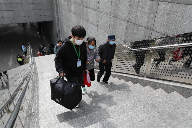 志愿者們?cè)谲囌尽⒌罔F迎接新生