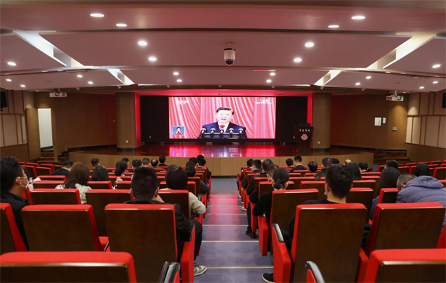 結(jié)合疫情防控實(shí)際,該校分別在國際會議廳和雙創(chuàng)大講堂設(shè)置主會場和分會場,在校的校黨委理論學(xué)習(xí)中心組成員和黨政職能部門科級及以上干部在主會場收看開幕會,黨政職能部門職員在分會場收看開幕會。各二級黨組織結(jié)合實(shí)際,采取線上線下相結(jié)合的方式,組織本單位師生收聽收看開幕會。校內(nèi)教學(xué)樓、餐廳、大禮堂等打開電視、電子顯示屏等設(shè)備,供師生觀看大會盛況。校廣播站全程轉(zhuǎn)播開幕會音頻。