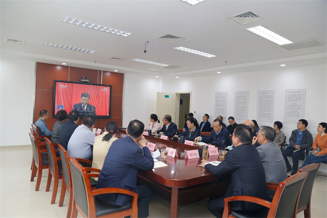 10月16日上午10時,學(xué)校黨委理論學(xué)習(xí)中心組舉行學(xué)習(xí)(擴大)會,全體校領(lǐng)導(dǎo)和有關(guān)職能部門負責(zé)人在圖書館第二報告廳集中收看開幕會,認真聆聽習(xí)近平總書記代表第十九屆中央委員會向大會所作的報告。校長許二平表示,深入學(xué)習(xí)宣傳貫徹黨的二十大精神是學(xué)校當(dāng)前和今后一個時期的重要政治任務(wù),全校各基層黨組織要采取多種形式深學(xué)細悟黨的二十大精神,推動各項工作再上新臺階。我們要高舉偉大旗幟,汲取貫徹黨的二十大精神的磅礴力量;要響應(yīng)偉大號召,走好高等教育高質(zhì)量發(fā)展之路;要牢記使命擔(dān)當(dāng),把握中醫(yī)藥事業(yè)傳承創(chuàng)新發(fā)展的重要契機,不負重托,守正創(chuàng)新,積極融入新的偉大奮斗,在全面推進中華民族偉大復(fù)興的新征程上書寫更加出彩的中醫(yī)藥篇章!
