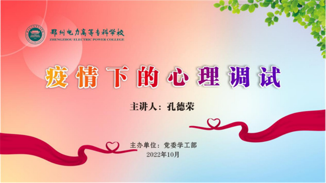 孔德榮從疫情封控形勢下關(guān)注心理健康的重要性入題,強(qiáng)調(diào)“每個人都是自己心理健康的第一責(zé)任人”這一理念,引導(dǎo)大家去覺察并且及時關(guān)注自己和周圍人的心理健康狀態(tài);通過具體案例,分析了封控期間容易產(chǎn)生的焦慮、恐慌、抑郁等各類情緒困擾和心理問題。
