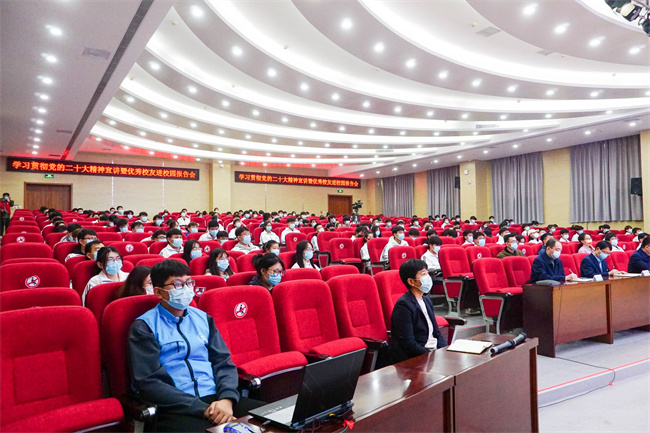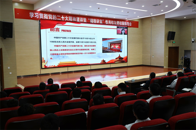 黨的二十大召開以來,學(xué)習(xí)宣傳貫徹黨的二十大精神是當(dāng)前和今后一個時期學(xué)校的首要政治任務(wù),為深入學(xué)習(xí)貫徹黨的二十大精神,學(xué)校特邀黨的二十大代表、優(yōu)秀校友閆歡歡進(jìn)行黨的二十大精神宣講,學(xué)校副校長黃鵬、各學(xué)院黨總支書記、政治輔導(dǎo)員等200余名師生在線聆聽報告,3000余名師生通過網(wǎng)絡(luò)直播進(jìn)行了學(xué)習(xí)。報告會由副校長黃鵬親自主持。