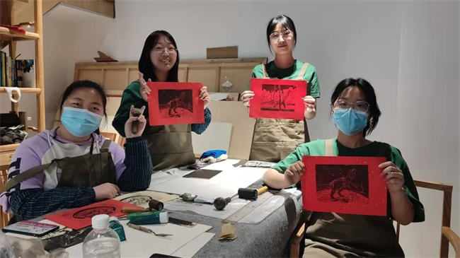 2020年,“版畫里的思政課” 獲得第四屆全國高校網(wǎng)絡(luò)教育優(yōu)秀作品推選展示活動微作品“三等獎”,再次讓郝彥杰看到了這一傳統(tǒng)藝術(shù)形態(tài)展示出來的時代魅力。“學(xué)生們喜歡,我也開心,很期待未來在版畫課堂里,能創(chuàng)新融合更多的知識元素,給學(xué)生們更多觸動心靈的學(xué)習(xí)體驗。”