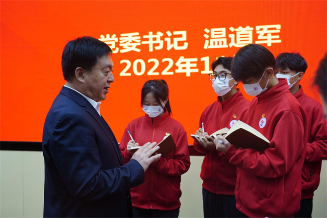 學(xué)校黨委書記溫道軍以《學(xué)思踐悟凝心鑄魂 踔厲奮發(fā)勇毅前行》為題宣講黨的二十大精神,為師生上專題思政課