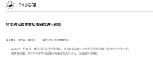 河南中醫(yī)藥大學(xué)主要領(lǐng)導(dǎo)調(diào)整!