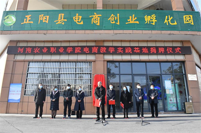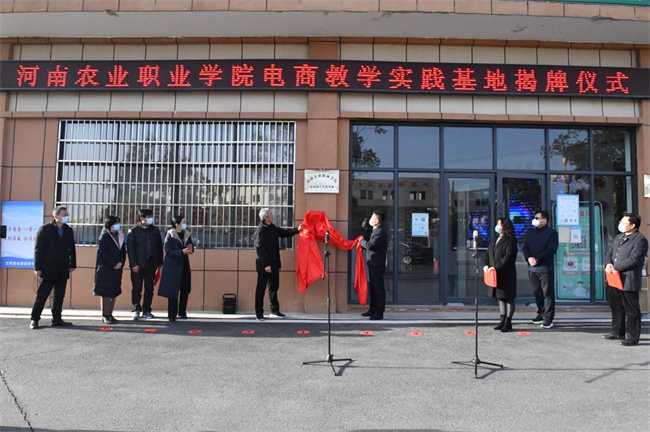 陳建軍、張鵬共同為河南農(nóng)業(yè)職業(yè)學(xué)院電商教學(xué)實踐基地揭牌。