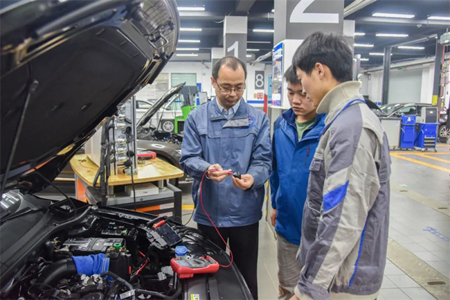 汽車的“電”更復(fù)雜,出現(xiàn)故障后不容易看到、量出,檢測信號還有更復(fù)雜的電控程序和邏輯,日常教學(xué)中,他根據(jù)學(xué)校的育人理念,從學(xué)生中發(fā)掘愛鉆研、對技術(shù)敏感的學(xué)生,組成興趣小組,從而帶動(dòng)全組、全班的進(jìn)步。這種培養(yǎng)方法在職業(yè)技能比賽中獲了不少獎(jiǎng)項(xiàng),也帶出了不少汽修“尖子生”,一到畢業(yè)季就有不少企業(yè)向他要人,“學(xué)生們這么受歡迎,當(dāng)老師的是最開心的。”