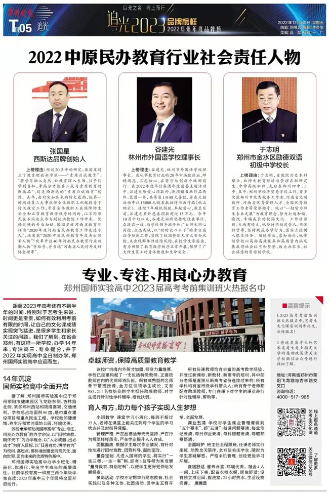 (林州市外國(guó)語(yǔ)學(xué)校理事長(zhǎng)谷建光榮獲“2022中原民辦教育行業(yè)社會(huì)責(zé)任人物”榮譽(yù)稱(chēng)號(hào))