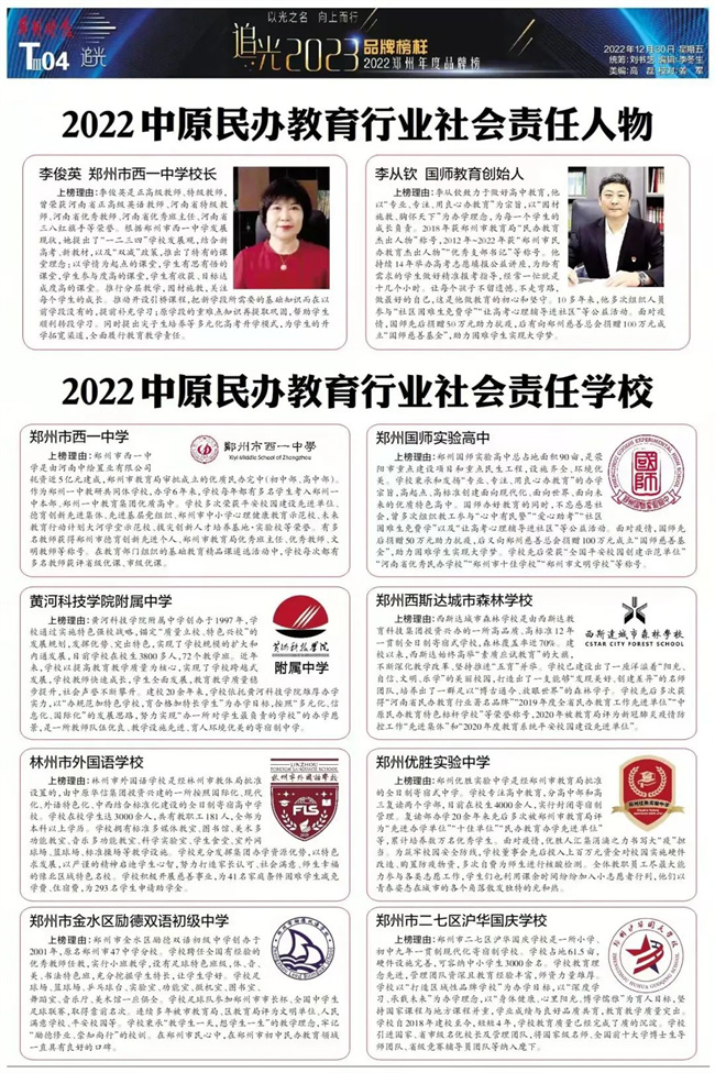 (林州市外國(guó)語(yǔ)學(xué)校榮獲“2022中原民辦教育行業(yè)社會(huì)責(zé)任學(xué)校”榮譽(yù)稱(chēng)號(hào))
