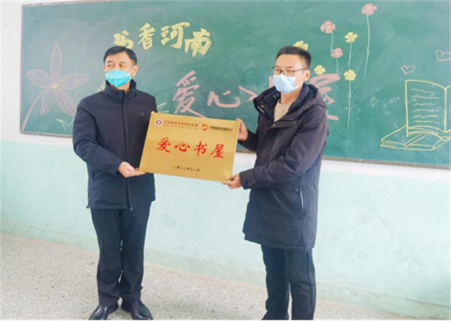 調(diào)研走訪期間,舉行了河南醫(yī)學高等?茖W校為夏邑縣何營鄉(xiāng)中心小學、郭莊農(nóng)貿(mào)區(qū)郭莊小學捐建的“愛心書屋”啟用儀式,孫韜校長分別為兩所學校“愛心書屋”授牌。這次捐建的“愛心書屋”是在學校第一批捐建基礎(chǔ)上進行優(yōu)化,結(jié)構(gòu)組成、圖書種類更合理,每所“愛心書屋”有6組書柜,并精心挑選了價值11萬余元、適合少年兒童閱讀的各類圖書3200多冊,努力滿足學校師生“多讀書、讀好書”的需求,培養(yǎng)廣泛興趣,樹立遠大理想,為孩子們健康成長打牢基礎(chǔ)。啟用儀式上,河南省扶貧基金會王品主任為學校頒發(fā)了捐贈證明和榮譽證書。