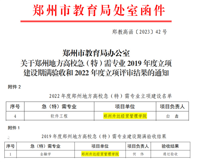 鄭州升達經(jīng)貿(mào)管理學(xué)院軟件工程專業(yè)獲批2022年度鄭州地方高校急(特)需專業(yè)立項建設(shè)