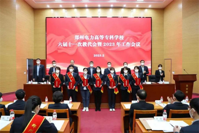 中新河南網(wǎng)2月23日電(李安杰) 2月22日,鄭州電力高等?茖W(xué)校六屆十一次教代會(huì)暨2023年工作會(huì)議在報(bào)告廳舉行。會(huì)議的主要任務(wù)是深入學(xué)習(xí)貫徹黨的二十大精神,全面落實(shí)全國(guó)、全省教育工作會(huì)議、國(guó)網(wǎng)河南省電力公司八屆三次職代會(huì)暨2023年工作會(huì)議精神,總結(jié)工作、分析形勢(shì)、部署任務(wù),融入教育強(qiáng)省戰(zhàn)略,攀登電力職教高峰,在全面建設(shè)電力特色鮮明的高水平高等職業(yè)院校、發(fā)展本科層次職業(yè)教育征程上譜寫新篇章。