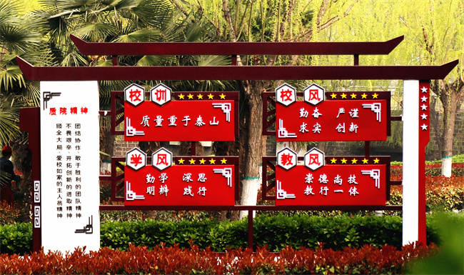 狠抓基礎建設,增強環(huán)境育人功能。學院不斷完善圖書館、校史館、體育場、黨建活動中心建設;投入1000余萬元進行了校園綠化、道路升級、墻面翻新、照明亮化等。先后完成文化廣場升級改造和質(zhì)量廣場建設;完成校園道路、樓宇命名、校園文化(標識標牌)系統(tǒng)建設。在標識標牌系統(tǒng)建設中,以弘揚“質(zhì)量重于泰山”的校訓精神和“準質(zhì)量度、善物世人”的辦學宗旨為核心,引入中華傳統(tǒng)質(zhì)量文化、大學精神為學院的道路、樓宇等科學命名,如:嘉量樓、明德樓、質(zhì)善路、準衡路等,并制作精美標牌,使師生處處感受到文化的熏陶和啟迪,大大豐富了校園文化的底色,提升了校園的文化層次。