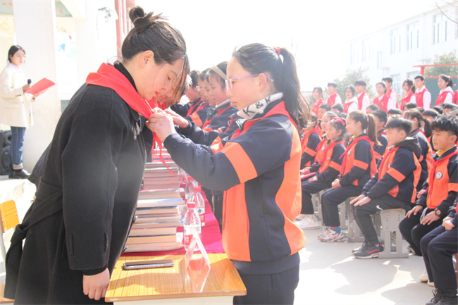 少先隊(duì)員向老師們敬獻(xiàn)紅領(lǐng)巾