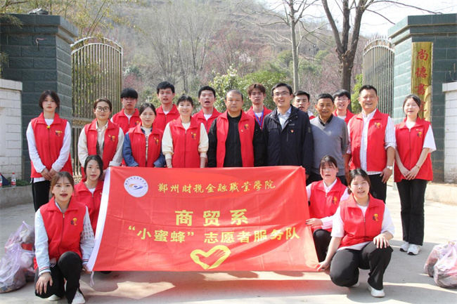 上午十點,師生們抵達了新密市超化鎮(zhèn)莪溝村準備開展志愿植樹活動。活動開始之前,商貿系黨支部副書記劉晉鼓勵同學們:“希望同學們通過此次活動親身體驗勞動的樂趣,在實踐中增強‘植綠、護綠、愛綠’的意識,用實際行動踐行‘綠水青山就是金山銀山’的生態(tài)文明理念。”學生們紛紛響應號召,身體力行地沿新密溱洧流域途中彎腰撿拾地面和草叢中的雜物、紙巾等生活垃圾,過程中志愿者們充分發(fā)揮不怕臟、不怕累的精神,認真維護鄉(xiāng)村環(huán)境,踐行綠色環(huán)保理念。