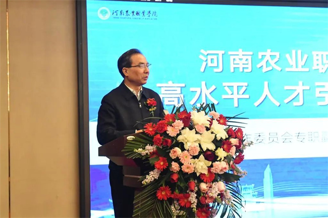 省委教育工委專職副書記尹洪斌指出,此次高水平人才引進(jìn)活動不僅是河南農(nóng)業(yè)職業(yè)學(xué)院發(fā)展過程中的一件大事,也是河南教育界、高等教育職業(yè)教育界的一件盛事,不僅彰顯了河南農(nóng)業(yè)職業(yè)學(xué)院對高端人才的祈求和祈盼,體現(xiàn)了學(xué)校對建設(shè)高質(zhì)量職業(yè)教育和高等教育的勇氣和情懷,也體現(xiàn)了落實河南省創(chuàng)新驅(qū)動、科教興省、人才強(qiáng)省戰(zhàn)略的信心和決心。尹洪斌代表省科技廳、人社廳、省委教育工委、教育廳,對河南農(nóng)業(yè)職業(yè)學(xué)院舉辦的高水平人才引進(jìn)活動表示熱烈祝賀,對加盟河南農(nóng)業(yè)職業(yè)學(xué)院教育改革發(fā)展的各位專家、各位教授、各位領(lǐng)軍人才表示歡迎和祝愿。