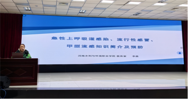 專題講座在學校航空港校區(qū)德禮講堂進行,學校醫(yī)務室醫(yī)生張少嚴和李菡主講,航空港校區(qū)管委會主任楊慧麗主持,并以視頻形式在花園路校區(qū)、信陽校區(qū)同時進行。講座中,張少嚴從結(jié)核病的基本知識、傳播途徑、危害及防控措施等方面向師生講解了結(jié)核病相關(guān)知識,提醒大家要增強自我保健意識,提高防控結(jié)核病能力,樹立傳染病預防理念。李菡就近期“甲流”流行情況和春季呼吸道疾病防控做了簡明概述。楊慧麗在總結(jié)講話中,倡導同學門要在校園內(nèi)廣泛宣傳講座內(nèi)容,成為結(jié)核病預防和杜絕傳染病在校園內(nèi)傳播的倡導者、行動者、推動者,做好自身健康的第一責任人。整場講座生動精煉、簡明易懂,有利于師生掌握呼吸系統(tǒng)疾病防治知識和技能。