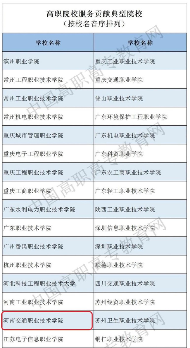 近年來,河南交通職業(yè)技術(shù)學(xué)院緊跟產(chǎn)業(yè)轉(zhuǎn)型升級(jí),適應(yīng)地方經(jīng)濟(jì)產(chǎn)業(yè)發(fā)展趨勢(shì),創(chuàng)新人才培養(yǎng)模式,加強(qiáng)高水平專業(yè)建設(shè),強(qiáng)化產(chǎn)教融合、校企合作,將行業(yè)企業(yè)對(duì)技能人才的需求目標(biāo)和要求落實(shí)到人才培養(yǎng)的全過程中,為河南省經(jīng)濟(jì)發(fā)展和交通運(yùn)輸事業(yè)發(fā)展提供人才支撐和智力支持。本次入選高職院校服務(wù)貢獻(xiàn)典型院校,標(biāo)志著該校綜合辦學(xué)實(shí)力和社會(huì)影響力的顯著提升。學(xué)校將在此基礎(chǔ)上繼續(xù)努力,改革創(chuàng)新,服務(wù)貢獻(xiàn),深入推進(jìn)內(nèi)涵建設(shè),全面提升辦學(xué)質(zhì)量,向特色鮮明、省內(nèi)領(lǐng)先、全國(guó)一流高水平高職學(xué)校建設(shè)目標(biāo)邁進(jìn)。