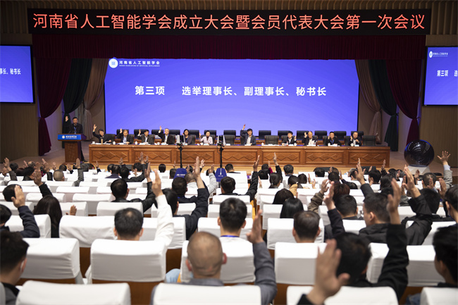 中國科學(xué)院院士閆楚良為首屆理事會名譽(yù)理事長,華北水利水電大學(xué)副校長劉雪梅當(dāng)選為理事長,河南省產(chǎn)學(xué)研人工智能研究院院長馬廣建、鄭州航空工業(yè)管理學(xué)院副校長劉兆瑜、中原工學(xué)院副校長劉洲峰、河南工學(xué)院副校長戚新波、黃河科技學(xué)院校長楊雪梅、鄭州大學(xué)計算機(jī)與人工智能學(xué)院院長徐明亮、河南大學(xué)人工智能學(xué)院執(zhí)行院長路楊、河南師范大學(xué)計算機(jī)與信息工程學(xué)院院長劉棟、省特聘教授河南科技大學(xué)信息工程學(xué)院副院長張志勇、河南科技學(xué)院人工智能學(xué)院院長古樂聲、河南森源中鋒智能制造有限公司總經(jīng)理過金超、河南華信陽光教育科技集團(tuán)總經(jīng)理谷建光當(dāng)選為副理事長,河南省產(chǎn)學(xué)研人工智能研究院院長馬廣建當(dāng)選為秘書長(兼)。