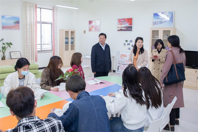 中新河南網(wǎng)4月26日電(胡學(xué)博 王鵬豪) 4月21日上午,河南省高校心理健康教育工作標(biāo)準(zhǔn)化建設(shè)驗收專家組一行5人蒞臨鄭州升達(dá)經(jīng)貿(mào)管理學(xué)院,對該校心理健康教育工作標(biāo)準(zhǔn)化建設(shè)進(jìn)行驗收評估。南陽師范學(xué)院副書記謝冰松任組長,成員有河南師范大學(xué)黨委學(xué)工部長葛照金、安陽師范學(xué)院心理健康教育中心主任王寶玲、河南醫(yī)學(xué)高等?茖W(xué)校心理健康教育中心主任秦冰、河南職業(yè)技術(shù)學(xué)院學(xué)工部長姚曉輝。