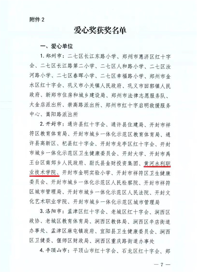 黃河水利職業(yè)技術(shù)學(xué)院獲評(píng)河南省愛心單位