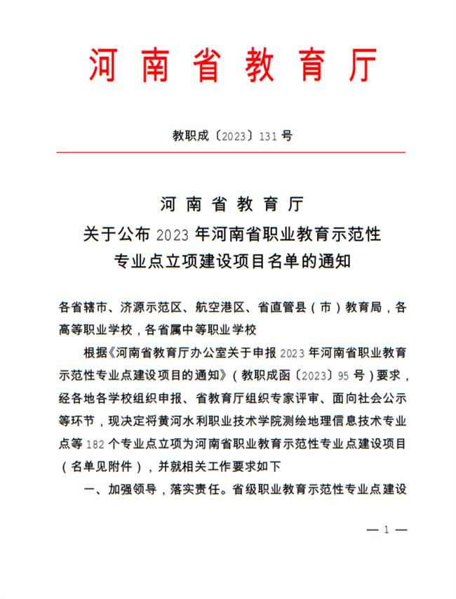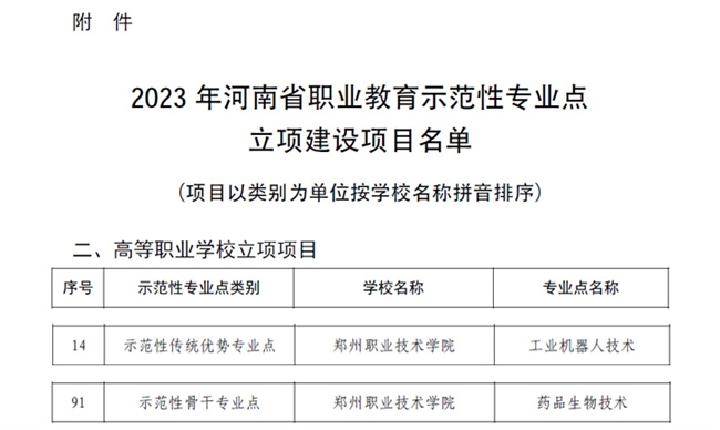鄭州職業(yè)技術(shù)學(xué)院兩專業(yè)獲批河南省職業(yè)教育示范性專業(yè)點(diǎn)立項(xiàng)建設(shè)項(xiàng)目