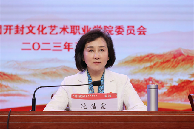 沈潔霞對近年來開封文化藝術(shù)職業(yè)學院團委在組織建設(shè)凝聚青年、思想教育引導(dǎo)青年、文化活動熏陶青年、社會實踐錘煉青年、志愿服務(wù)提升青年等方面取得的成績給予充分肯定,并向全校青年學子提出三點希望:一是志存高遠,勇于追求青春理想;二是踔厲奮發(fā),不斷傳承青春擔當;三是凝聚青春力量,用實際行動踐行“請黨放心強國有我”的青春誓言。