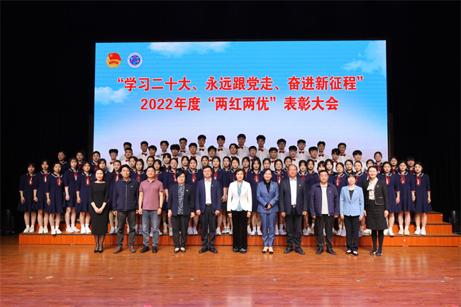 何新宣讀表彰決定。學校領(lǐng)導(dǎo)分別為五四紅旗團總支、十佳主題團日活動、優(yōu)秀團干和優(yōu)秀團員等先進基層團組織、先進個人頒獎。