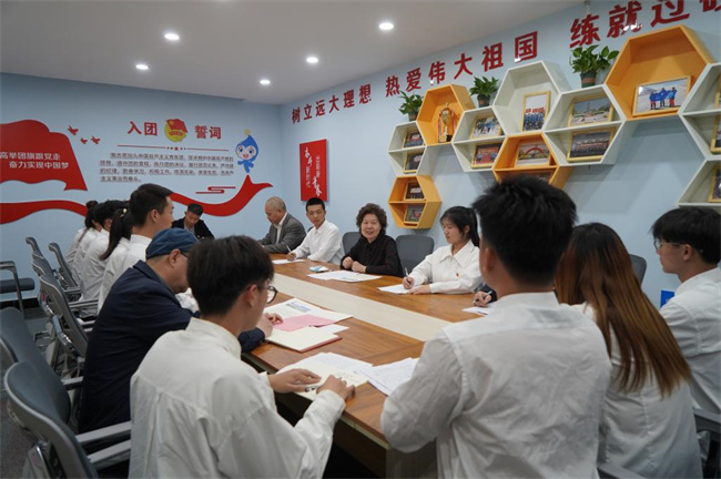 座談會前,周保平一行首先前往校團(tuán)委和各校級學(xué)生組織辦公室看望并慰問團(tuán)學(xué)干部,認(rèn)真聽取了團(tuán)學(xué)干部的工作情況匯報,并結(jié)合自身經(jīng)歷進(jìn)行深入交流分享。周保平對學(xué)校共青團(tuán)工作給予充分肯定,認(rèn)為共青團(tuán)在青年學(xué)生中發(fā)揮了積極影響,工作成效顯著。她強(qiáng)調(diào),共青團(tuán)工作要體現(xiàn)青年學(xué)生朝氣蓬勃、絢爛多彩的青春特點(diǎn),要在活動內(nèi)容、活動場所和活動形式上體現(xiàn)共青團(tuán)引領(lǐng)青年、帶動青年的特點(diǎn),增強(qiáng)對青年的吸引力,鑄就青年成才夢。她勉勵大家鼓足干勁,再接再厲,推動共青團(tuán)工作再上新臺階。周保平還向團(tuán)委青年教師送上節(jié)日的祝福。