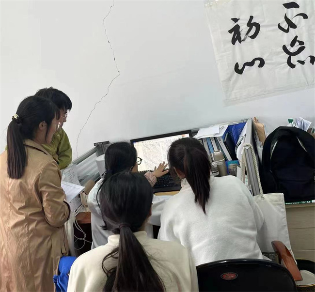 和風(fēng)惠萬物,百花俏枝頭,姹紫嫣紅春滿目,師院美景惹人醉。穿過杏壇廣場,來到六號教學(xué)樓6613室,與其說這是辦公室,不如說是“小型教室”!不大的屋子里,師生圍在一起熱烈討論、思維碰撞的場景映入眼簾。
