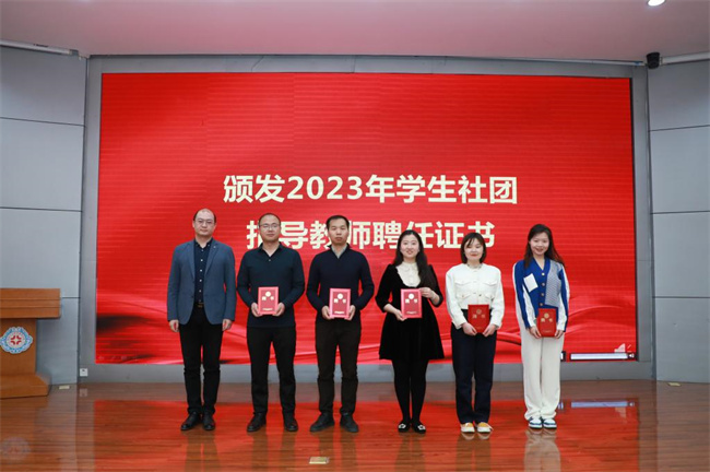 韋楊建宣布2023年學(xué)生社團(tuán)指導(dǎo)教師聘任名單并為新聘指導(dǎo)教師代表頒發(fā)聘書(shū)。