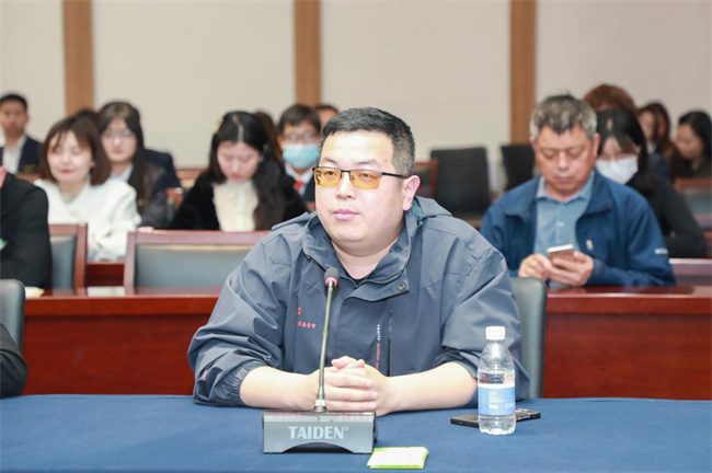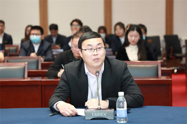 新聘學(xué)生社團(tuán)指導(dǎo)教師代表文法學(xué)院模擬法庭李群峰老師進(jìn)行發(fā)言,他對(duì)社團(tuán)的發(fā)展做出了規(guī)劃,一是要注重理論與實(shí)踐相結(jié)合,二是線上線下形式兼顧,三是要做到校內(nèi)校外活動(dòng)相結(jié)合。