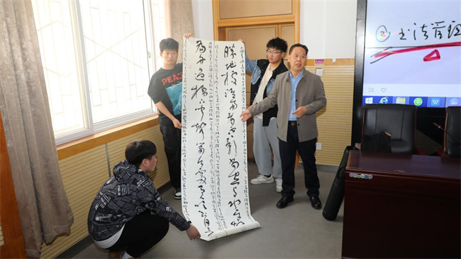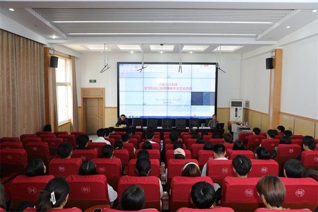 活動中,中國水利書法家協(xié)會副主席李憲章以“管徑窺幽——書法藝術(shù)欣賞與臨摹”為題,從自身學(xué)習(xí)書法的經(jīng)歷、書法工具的選擇、書法臨摹與創(chuàng)作等方面為書法愛好者介紹了學(xué)習(xí)書法的路徑和方法,現(xiàn)場展示了自己創(chuàng)作的條幅、冊頁、印屏、手卷等精美書法作品,并在互動環(huán)節(jié)向同學(xué)們贈送了書法小品,深受同學(xué)們喜愛。大家表示這次講座激發(fā)了自己學(xué)書法、練書法的興趣和熱情,為學(xué)習(xí)書法提供了借鑒,受益匪淺。