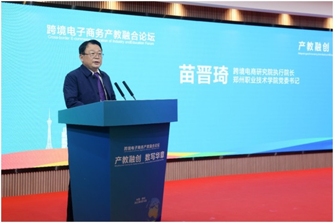 中新河南網(wǎng)5月15日電 5月10日下午,由鄭州市人民政府、河南省教育廳、河南省商務(wù)廳主辦,跨境電商研究院、中國服務(wù)貿(mào)易協(xié)會、河南國際數(shù)字貿(mào)易研究院、鄭州職業(yè)技術(shù)學(xué)院承辦的第七屆全球跨境電子商務(wù)大會平行論壇——跨境電子商務(wù)產(chǎn)教融合論壇在鄭州國際會展中心舉行。跨境電商研究院執(zhí)行院長、鄭州職業(yè)技術(shù)學(xué)院黨委書記苗晉琦、鄭州職業(yè)技術(shù)學(xué)院校長潘維成出席論壇并參加相關(guān)活動,論壇圍繞“產(chǎn)教融創(chuàng)、數(shù)寫華章”的主題,為跨境電商產(chǎn)教融合協(xié)同創(chuàng)新發(fā)展及人才培養(yǎng)建言獻(xiàn)策。