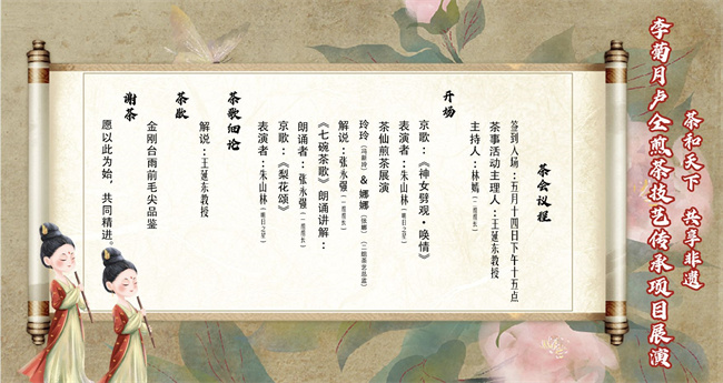 盧仝煎茶技藝傳承項(xiàng)目組將在5月14日舉辦首次展演,把首場(chǎng)展演選在母親節(jié),是飲水思源,向盧仝煎茶技藝傳承的拓荒者李菊月老師致敬之意。盧仝的《七碗茶歌》在中國(guó)茶文化史上留下了濃墨重彩的一筆。唐、宋、元、明、清時(shí)期三百多首詩(shī)篇與盧仝有關(guān)。