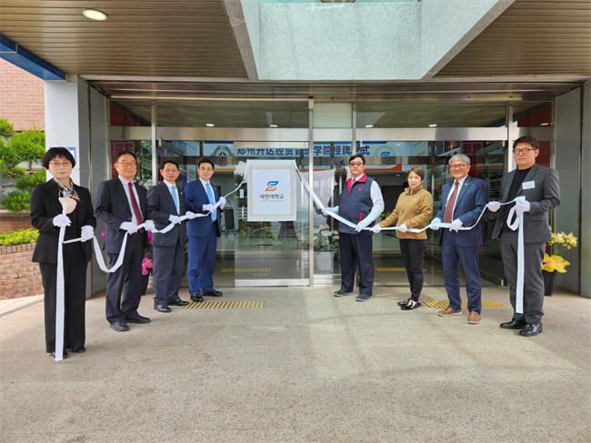 揭牌儀式上,雙方領(lǐng)導(dǎo)及參會(huì)人員共同為世翰大學(xué)升達(dá)分院揭牌,學(xué)校執(zhí)行董事王新奇、韓國(guó)世翰大學(xué)校長(zhǎng)李昇勛分別致辭,與會(huì)雙方還就相關(guān)工作進(jìn)行交流討論。