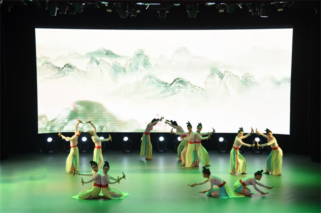 展演在舞蹈《成長在祖國的懷抱》中拉開序幕,音樂學院學前教育專業(yè)的同學們以優(yōu)美的舞姿,生動形象地詮釋了生長在祖國的懷抱里、在黨的陽光下快樂成長的拳拳之心。李娜 、翟冰雨等同學深情演繹的《春風十萬里》,用歌曲再現(xiàn)了“枝頭桃花紅,陌上楊柳綠,這方才播種,那邊又開犁,燕子飛來了,銜來滿嘴泥”的春天景象,歌頌我們偉大祖國朝氣蓬勃、欣欣向榮的大好局面。吳建華、馬雯兩位老師傾情演唱的歌曲《把一切獻給黨》,表達了廣大師生員工對黨忠誠不渝,對信仰矢志不移,甘愿為了理想奉獻青春、奉獻生命的堅定信念和滿腔豪情。由音樂學院師生聯(lián)袂演出的壓軸歌舞《復興的力量》,以磅礴的氣勢,表達了中華兒女為實現(xiàn)中華民族偉大復興中國夢的決心。舞蹈《書的流離》、《灼灼芳華》、《只此青綠》和《烈火中永生》,快板《道路》,古箏協(xié)奏曲《定風波》、話劇《一九四二》片段等節(jié)目輪番上演,精彩紛呈。整場展演以豐富多彩的藝術(shù)表現(xiàn)形式,展現(xiàn)了悠久燦爛的中華文化,幸福美好的時代生活,真摯動人的愛國主義情懷,弘揚了社會主義核心價值觀,歌頌了中國共產(chǎn)黨團結(jié)帶領(lǐng)中國人民經(jīng)過艱苦卓絕的奮斗在社會主義革命和建設(shè)中所取得的偉大成就。全體參演師生精神飽滿,激情洋溢,精彩的表演和精湛的技能,贏得現(xiàn)場觀眾陣陣掌聲。