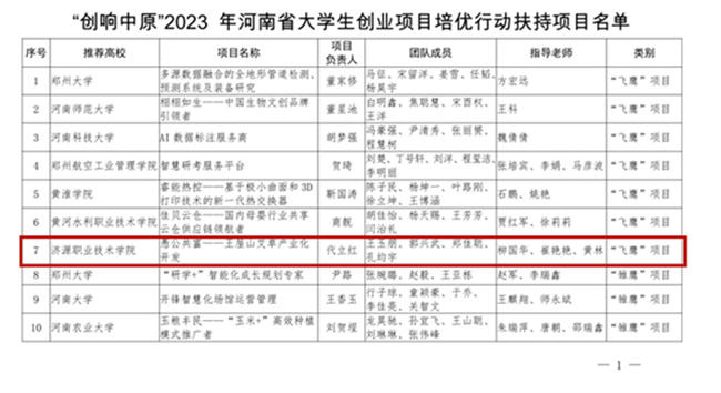 濟源職業(yè)技術(shù)學院在2023年河南省大學生創(chuàng)業(yè)項目培優(yōu)行動中獲得佳績