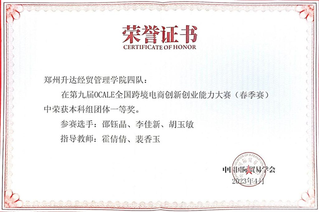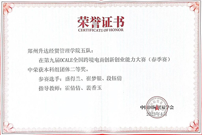 鄭州升達(dá)經(jīng)貿(mào)管理學(xué)院經(jīng)過兩個(gè)月的組織與準(zhǔn)備,最終選拔出兩支參賽隊(duì)伍代表學(xué)院參與此次比賽,由電子商務(wù)專業(yè)教師霍倩倩、裴香玉負(fù)責(zé)指導(dǎo)的兩支隊(duì)伍分別取得一等獎(jiǎng)、二等獎(jiǎng)的優(yōu)異成績。