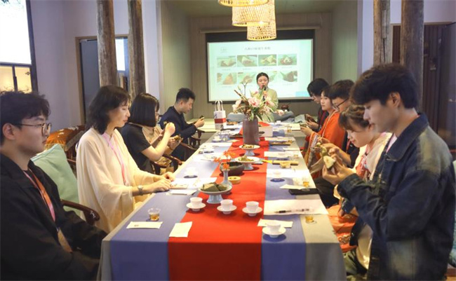 茶湯濃郁,表現(xiàn)力超乎尋常。當(dāng)與會(huì)嘉賓接過評(píng)審表和筆的時(shí)候,深深嘆服大豫倉傳播茶知識(shí)是認(rèn)真的,不覺端肅靜聽茶藝師任靜飛講解六大茶類的品飲。然后盲評(píng)了老白茶、生普、巖茶等代表茶品。回答正確的嘉賓獲得了城墻根定制品飲套組的獎(jiǎng)勵(lì),喜氣洋洋。工作人員端上了剛煮好的粽子,甜蜜軟糯,有藜麥芋泥、紅袍豆沙、抹茶紅豆等口味。傳承,主打返璞歸真,而創(chuàng)新是對(duì)時(shí)代的致敬,大豫倉不僅對(duì)茶、對(duì)粽子也探索更多的可能性,傳承與創(chuàng)新兼顧。