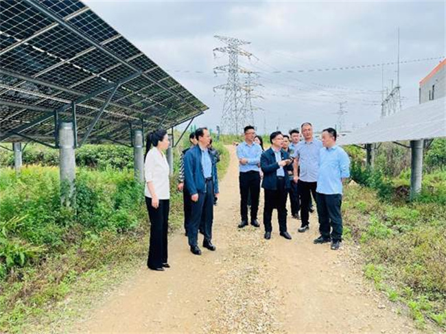 在項目工程人員帶領(lǐng)下,校長楊建華一行實地走訪了唐河光伏電站140兆瓦變電站和占地近三千畝的光伏板區(qū),對該光伏電站的設(shè)計、運維情況,工人值守工作內(nèi)容、需要技能等情況進行了詳細的詢問和了解。通過參觀交流,了解了光伏組件的相關(guān)參數(shù)、發(fā)電效率、發(fā)電影響因素、維護方式、經(jīng)濟效益和社會效益等內(nèi)容。